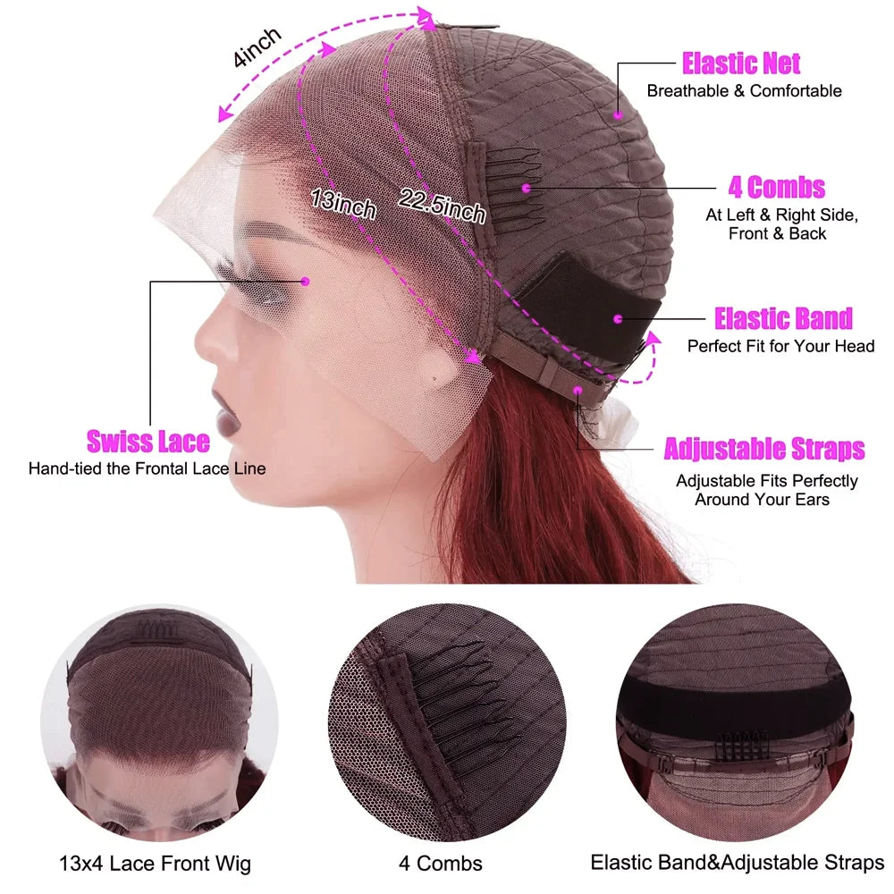 12 Inch Burgundy 99J 13x4 Lace Front Short Bob Wig Remy from Limoumi offers premium Remy Brazilian hair with a transparent Swiss lace base for a natural, seamless hairline. This 12-inch straight bob blends bold color with effortless style, making it a versatile choice for everyday wear and special occasions alike.