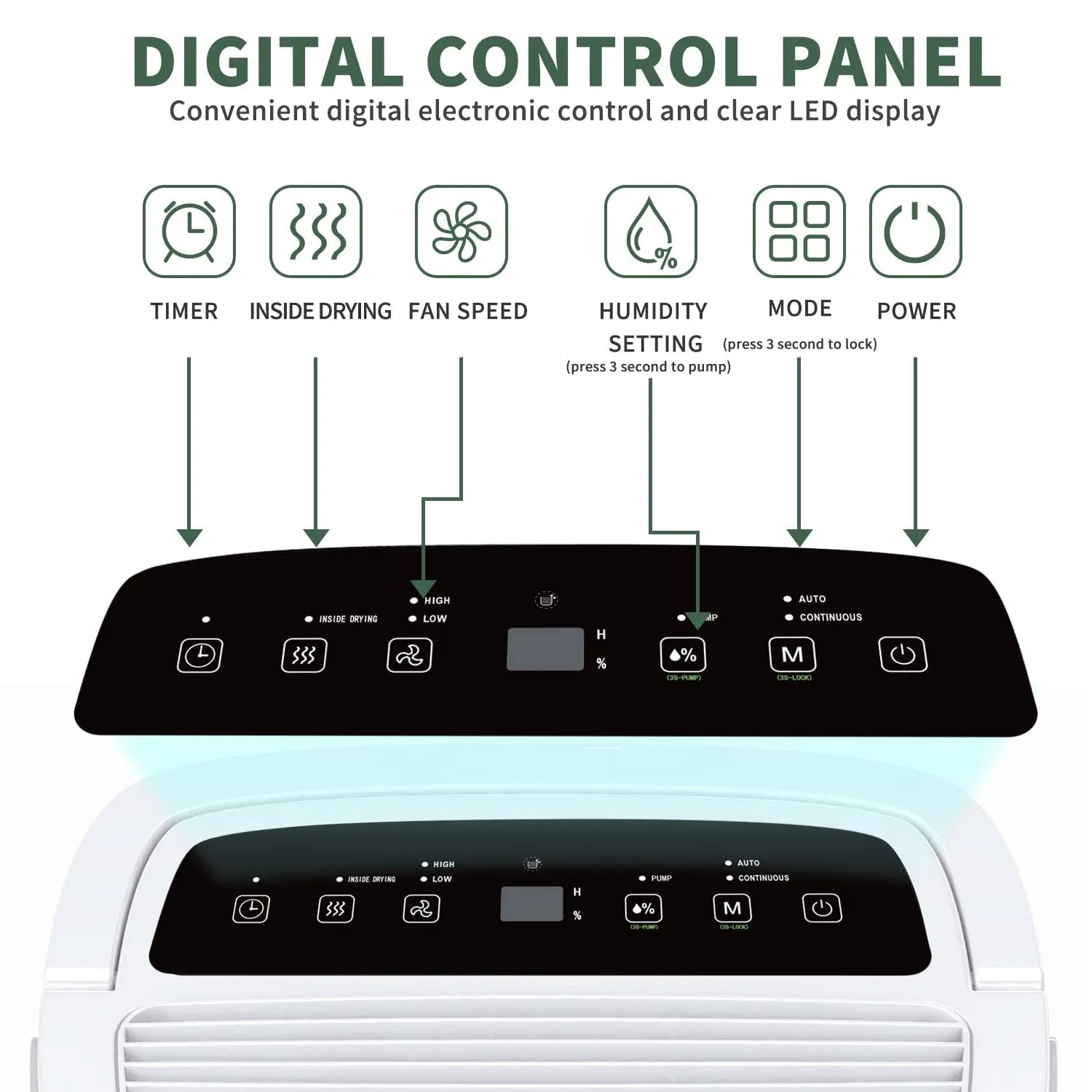 - Built for convenience: Auto restart, auto defrost, adjustable humidistat, LED display, removable 7L water bucket, and a bucket full indicator light for peace of mind.
