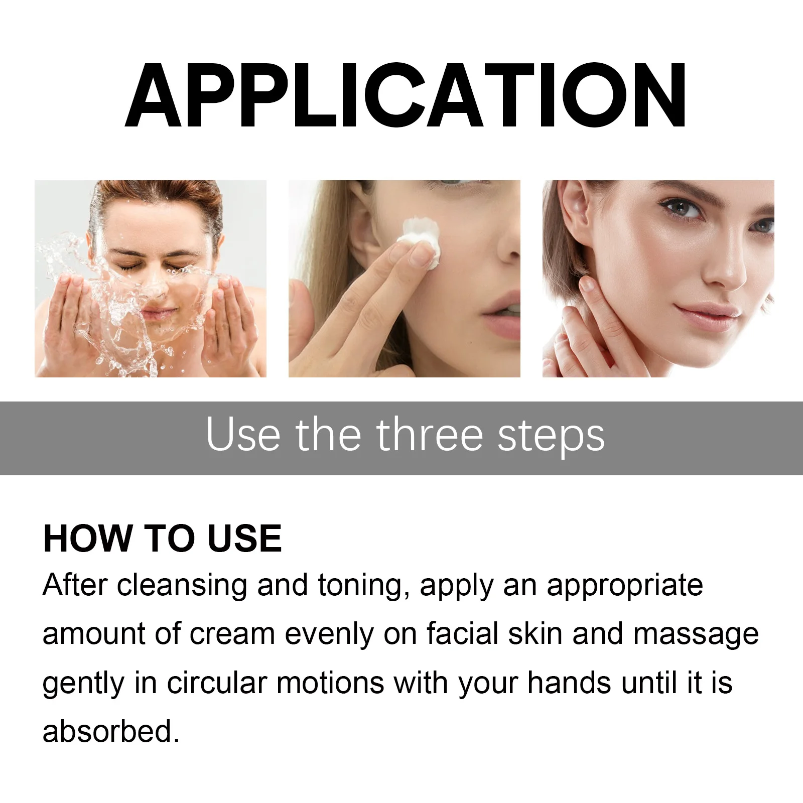 1. After cleansing and toning, apply an appropriate amount of cream evenly on facial skin.